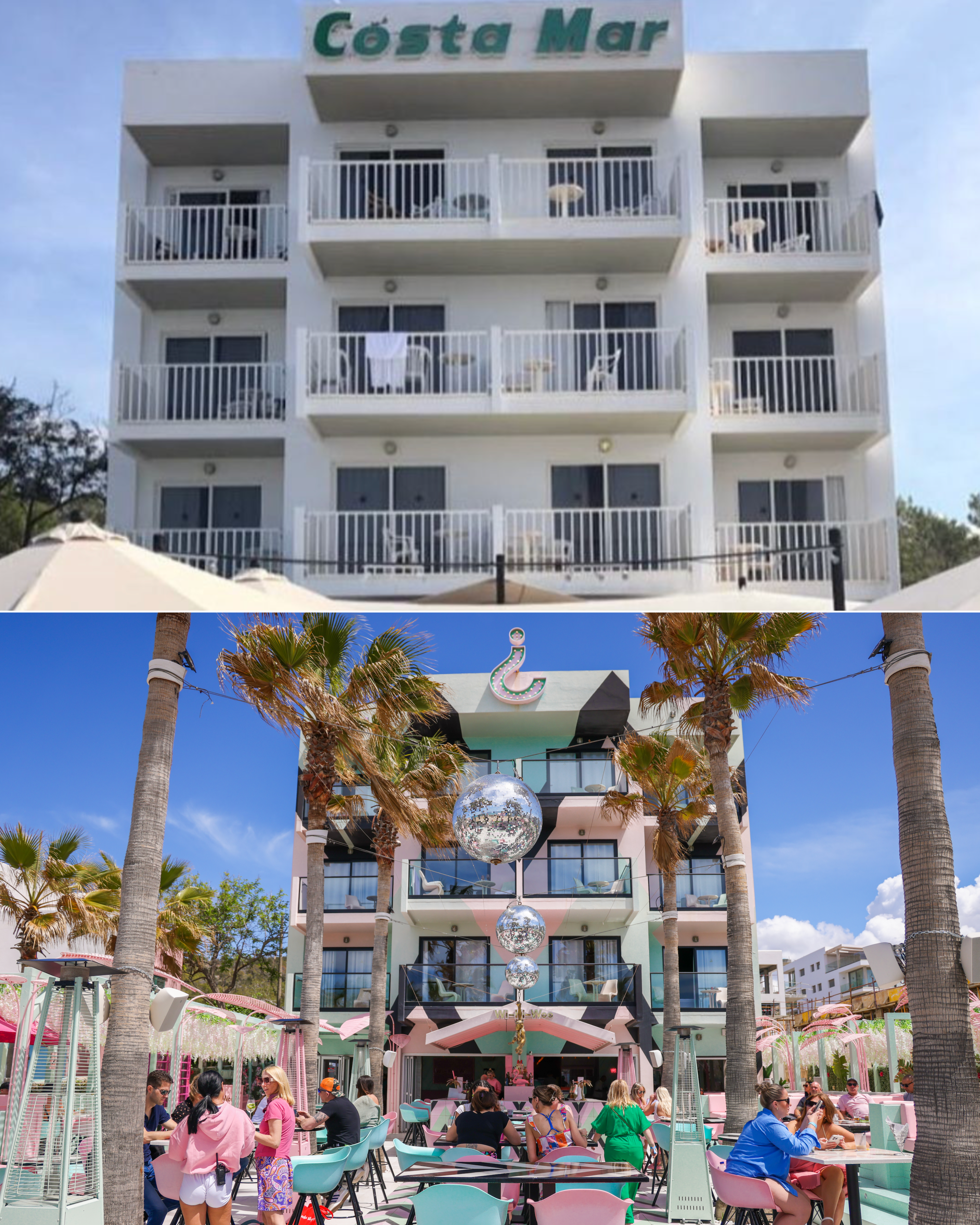 Following its reinvention, it quickly became one of Ibiza’s most photographed boutique stays, recognised for its distinctive design and front-row sunset setting in San Antonio Bay.